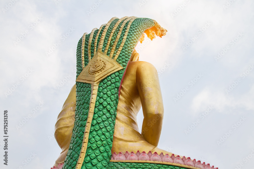 Images from the back of the statue of a large Buddha statue sitting in meditation. sky, is respected by Buddhist people.