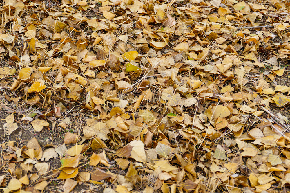 Poplar tree leaves falling on the ground in autumn, autumn tree and leaf landscapes,