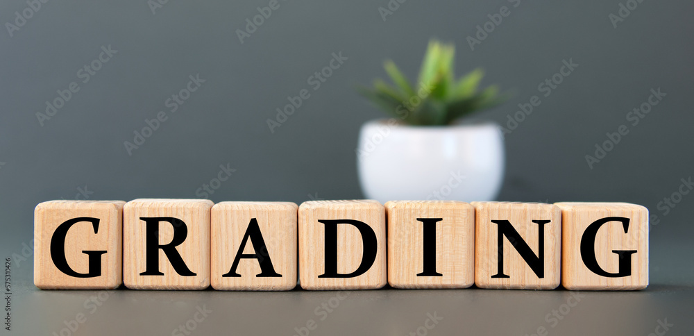 GRADING - word on wooden cubes on a gray background with a cactus