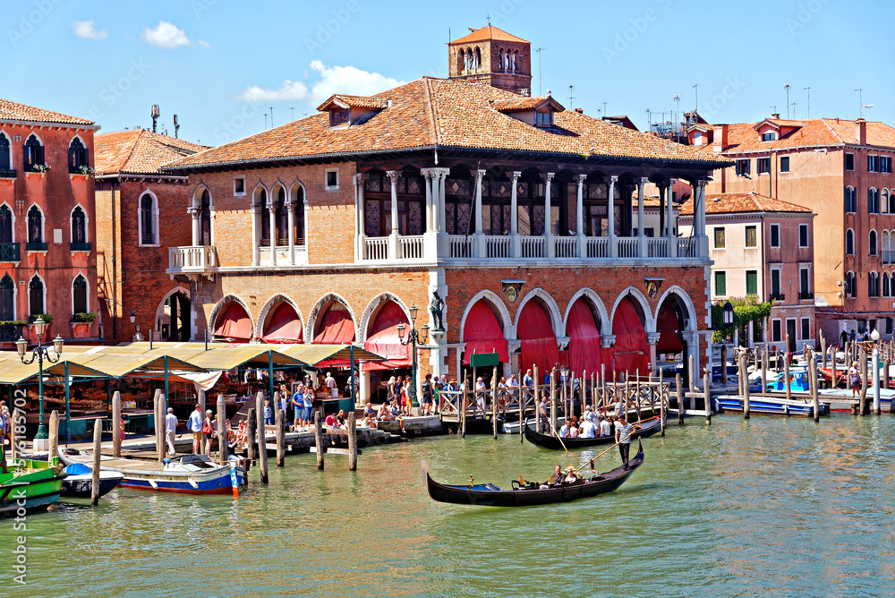 Grand canal Rialto Market, Mercati di Rialto.Since the year 1097, Venetians have depended on tis market for their daily supplies of fish, vegetables and fruit.