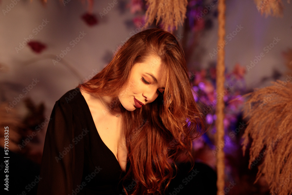 Schöne Erotische Frau im Schwarzem Kleid Studio in Berlin