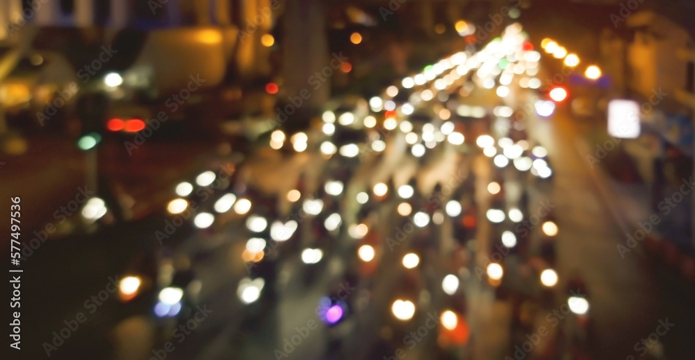 abstract blur urban city street road with cars lighting bokeh used as background. blurred city traffic night blurred on purpose. traffic jam.
