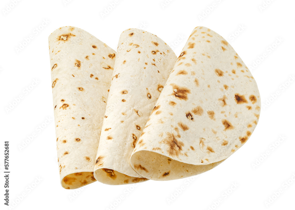 Pita bread cake, three pieces rolled in half, isolated on white background with clipping path