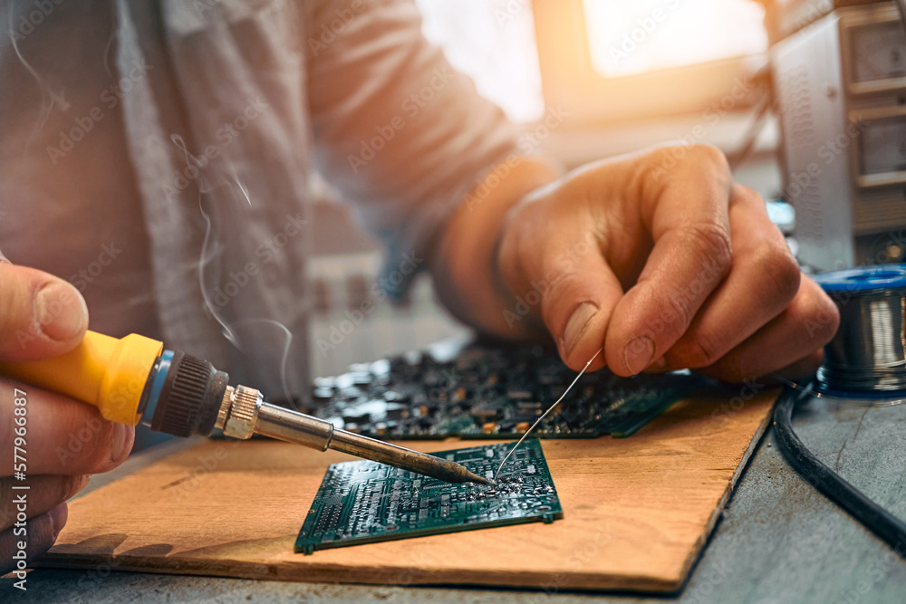 Close-up image of chip repair.Concept of engineering, chip development and service.