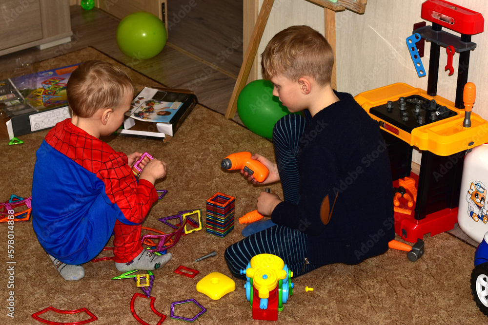 The boys are enthusiastic, he plays at home on the floor in the room as a designer.