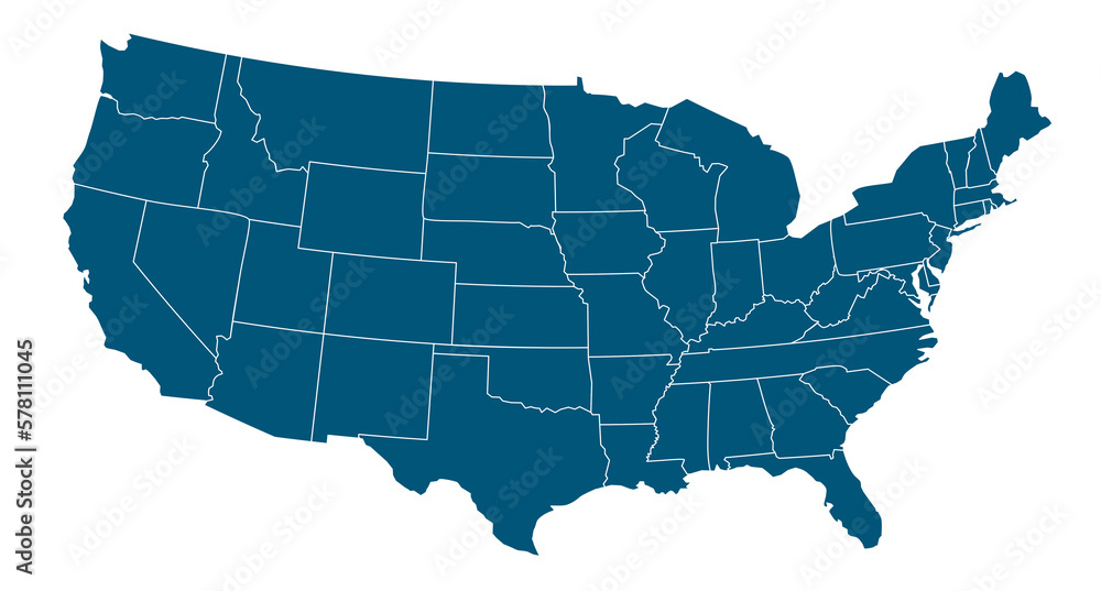USA states map outline. Country map United States of America. US states borders silhouettes.