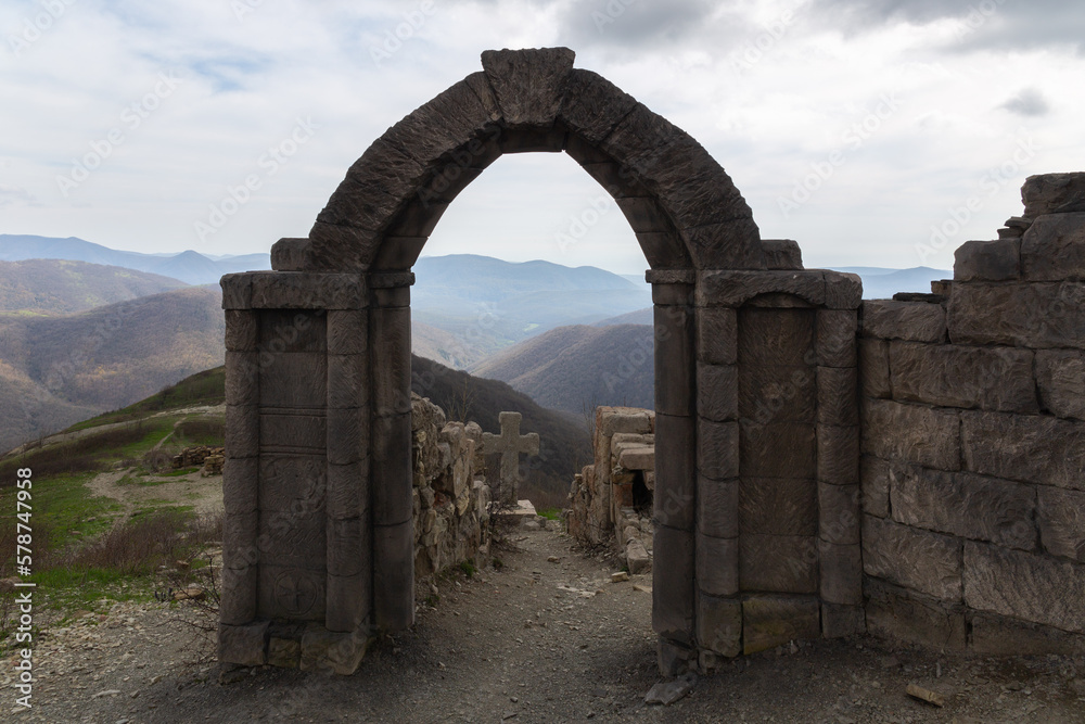 Storm Gate fortress in Gelendzhik. A man-made landmark on the southeastern slope of Mount Abin of the Kotsekhur ridge. Gelendzhik, Krasnodar Territory, Russia. 24.04.21