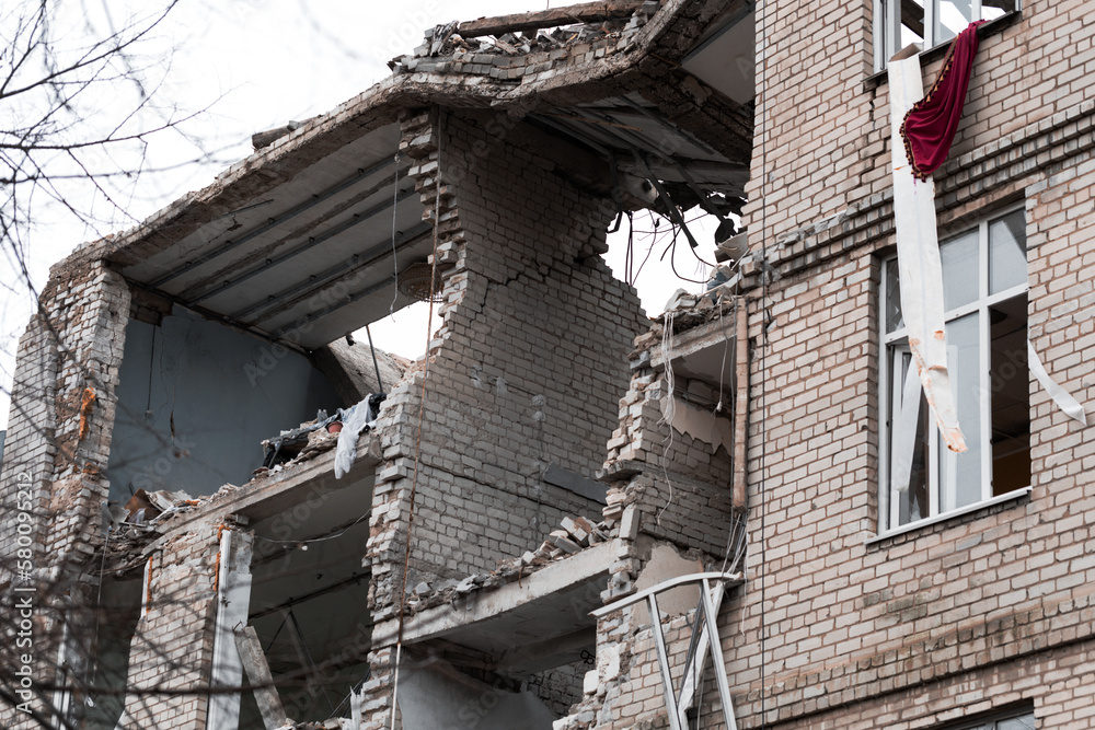 Destroyed building in Kherson during the war Russia Ukraine.