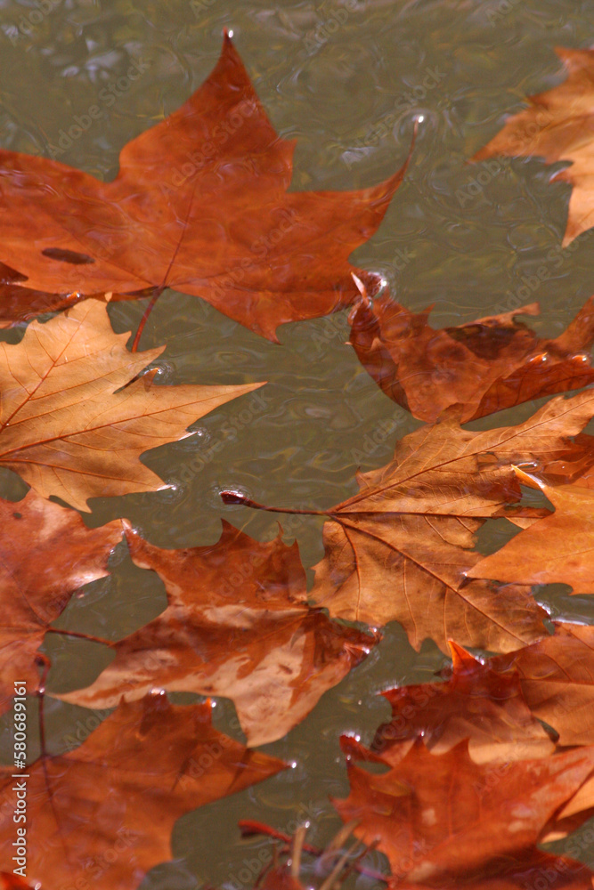 Feuilles d'automne sur le Canal du Midi à Béziers, feuille platanes, Hérault, Languedoc Roussillon, Occitanie , Sud de la France