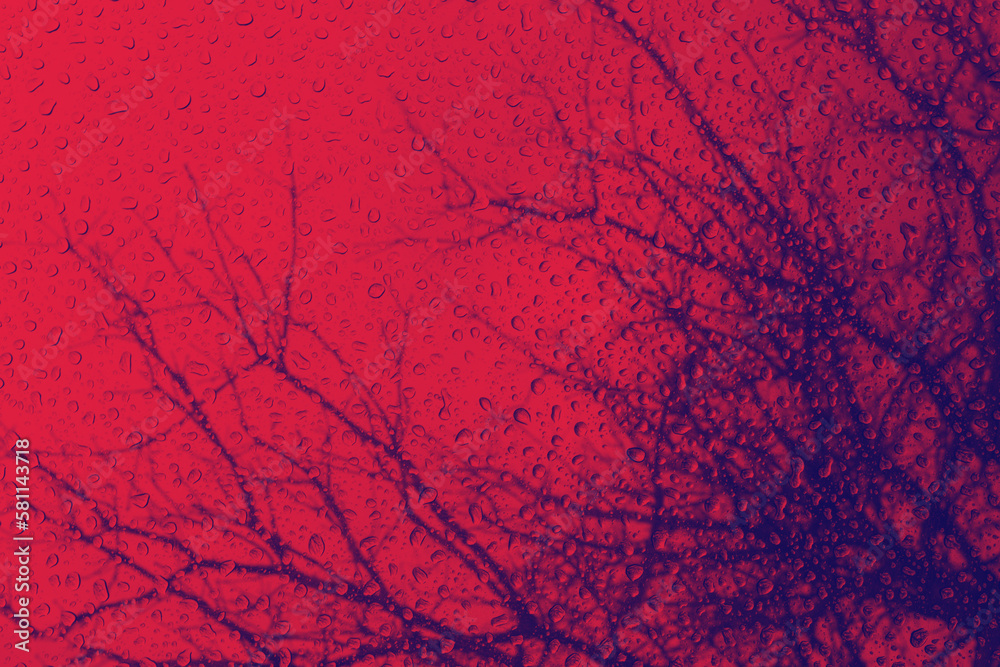 duo tone gradient rainy weather abstract blurred background with purple drops, surrealism