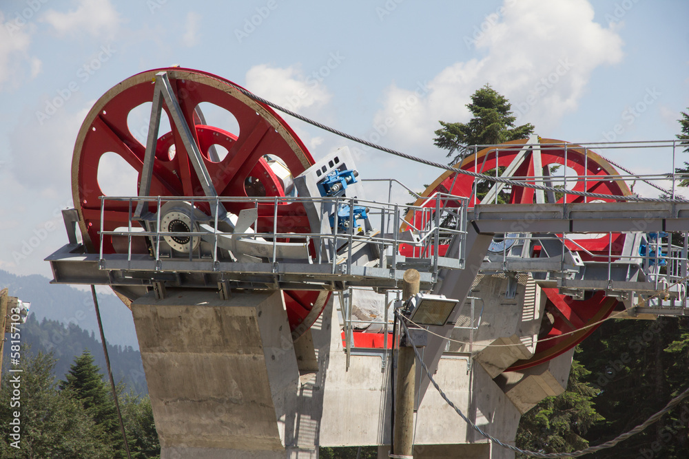 Chairlift mechanical pulleys in ski resort