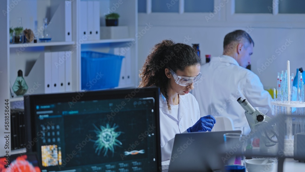 Scientists working on research in modern lab, developing treatment for disease
