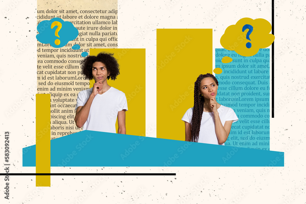Composite collage picture of two questioned mini people contemplate pensive big book page text isolated on creative background