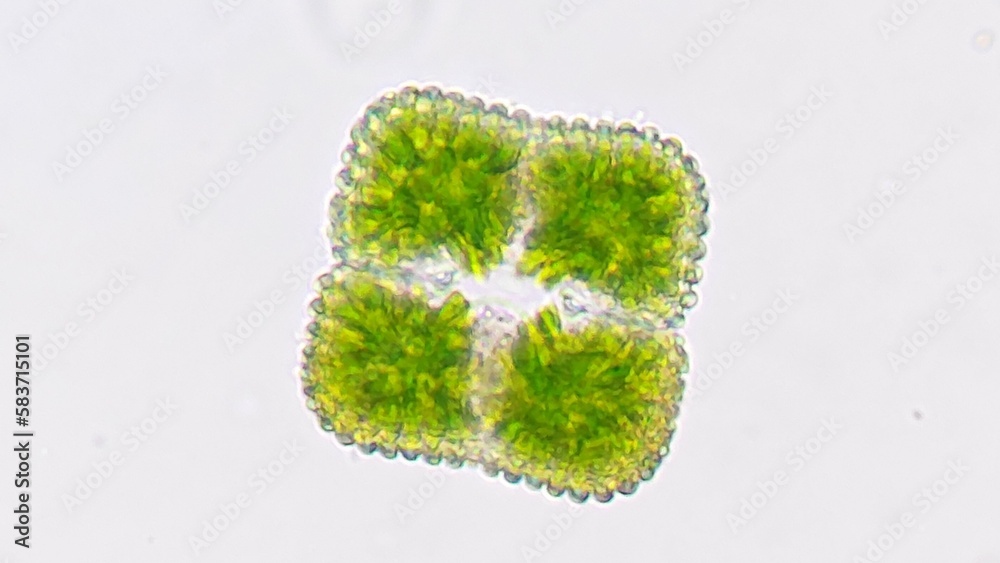 Freshwater green microalgae, Cosmarium margaritatum. Live cell. Selective focus