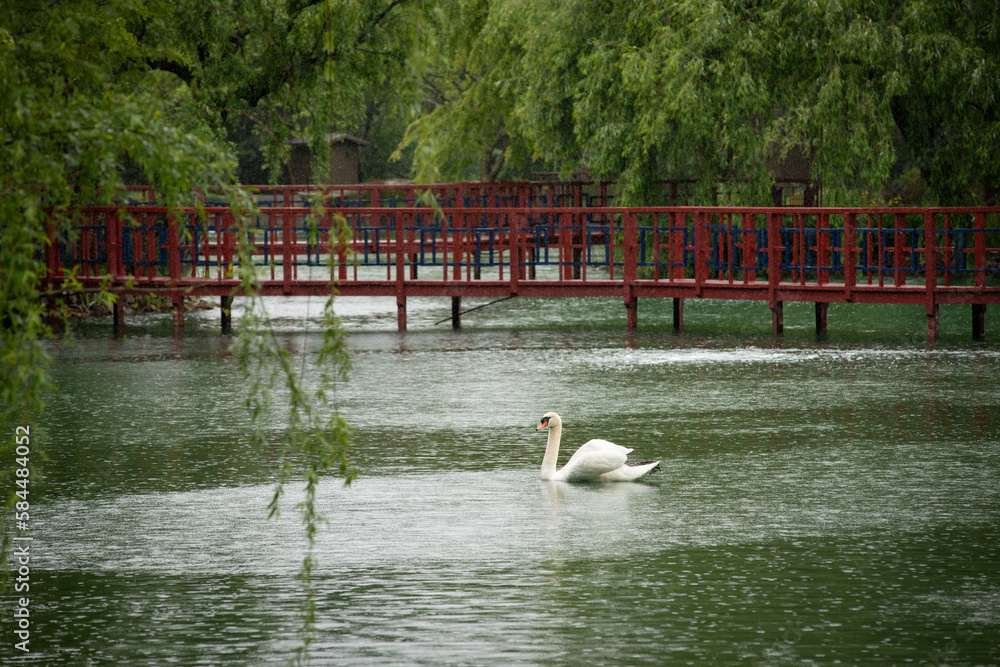 Beautiful garden with swan