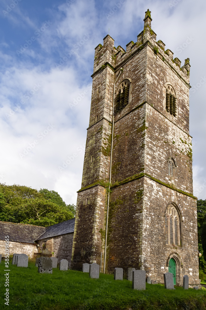Old 14th-century church tower of St Julitta's Church, a Grade II listed parish church in the Church of England Diocese of Truro in Lanteglos-by-Camelford, Cornwall.