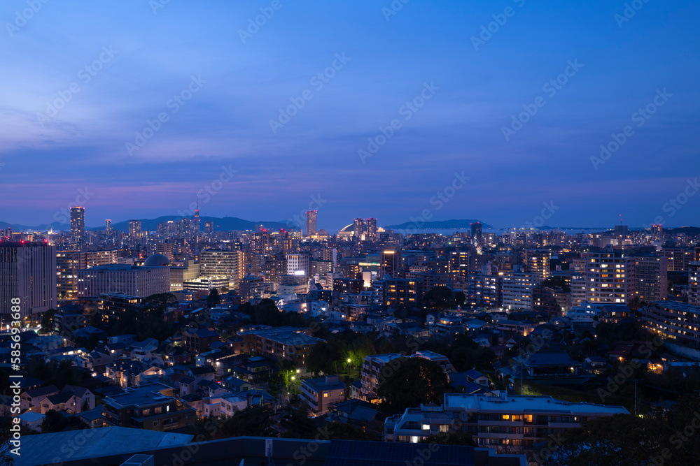 福岡タワーと福岡ドームの見える南公園西展望台から望む福岡の夜景