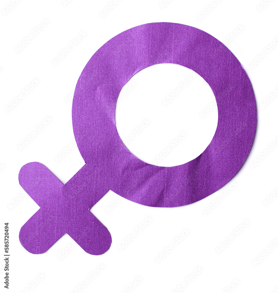 Paper female gender symbol icon isolated on transparent background. Venus symbol. The symbol for a female organism or woman and graphic designer. Paper art style.