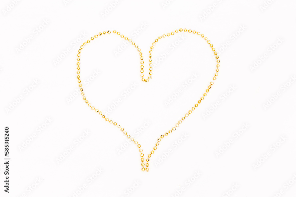 heart made of long golden beads on a white background