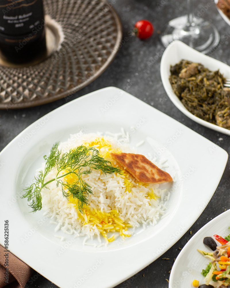 .Azerbaijani national dish Pilaf with meat and herbs called Sebzi