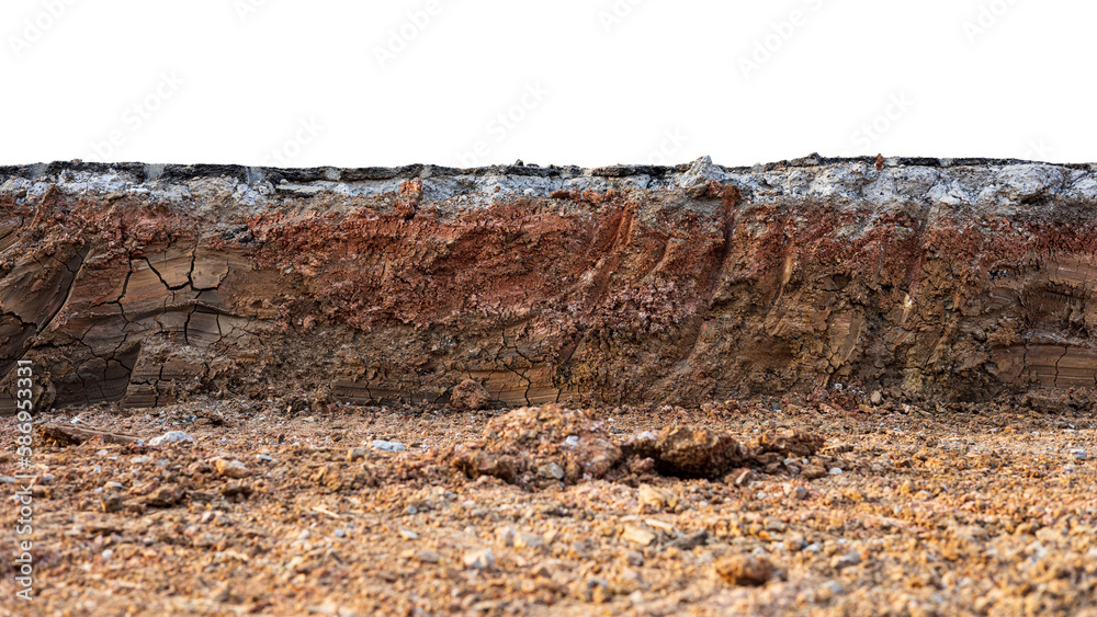 A cross-sectional view of the layer of soil beneath the paved road that was excavated and covered with dirt and dust to prepare for the construction and renovation of one of the Thai rural highways.
