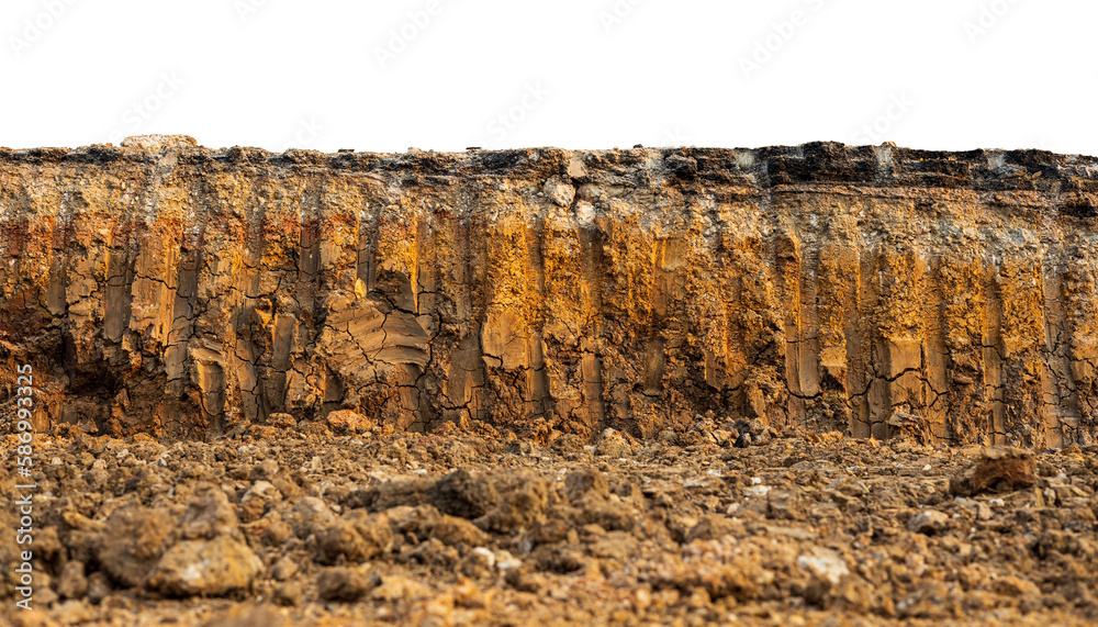 A low-angle view through the mound to the cross-section of the soil layer beneath an asphalt road.
