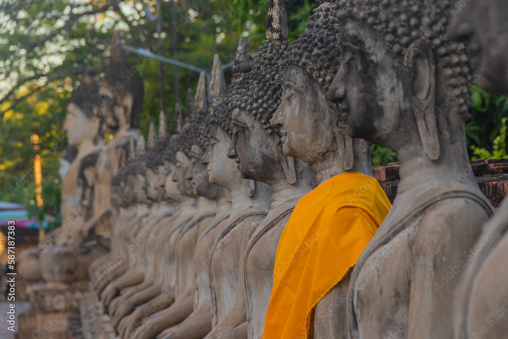 Buddha statues at the temple of Wat Yai Chai Mongkol in Ayutthaya near Bangkok, Thailand