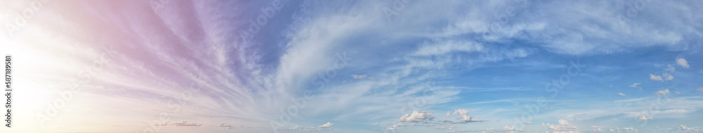 The panoramic view of the Cirrostratus clouds with sunlight and clear blue sky was a true testament to the beauty of nature, Sky background.