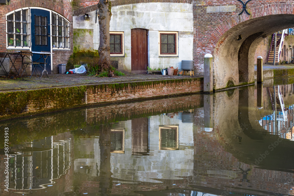 Wharf cellars along the canal in the center of the city of Utrecht.