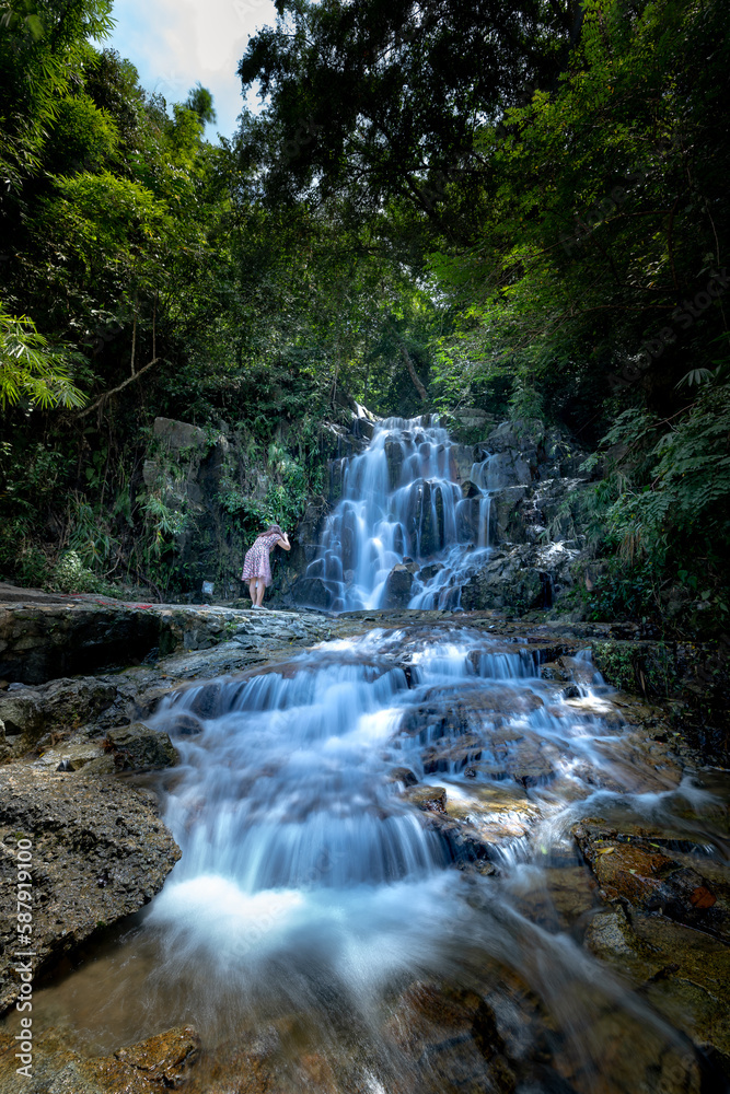 Stream flowing through rock crevices in the rainforest
