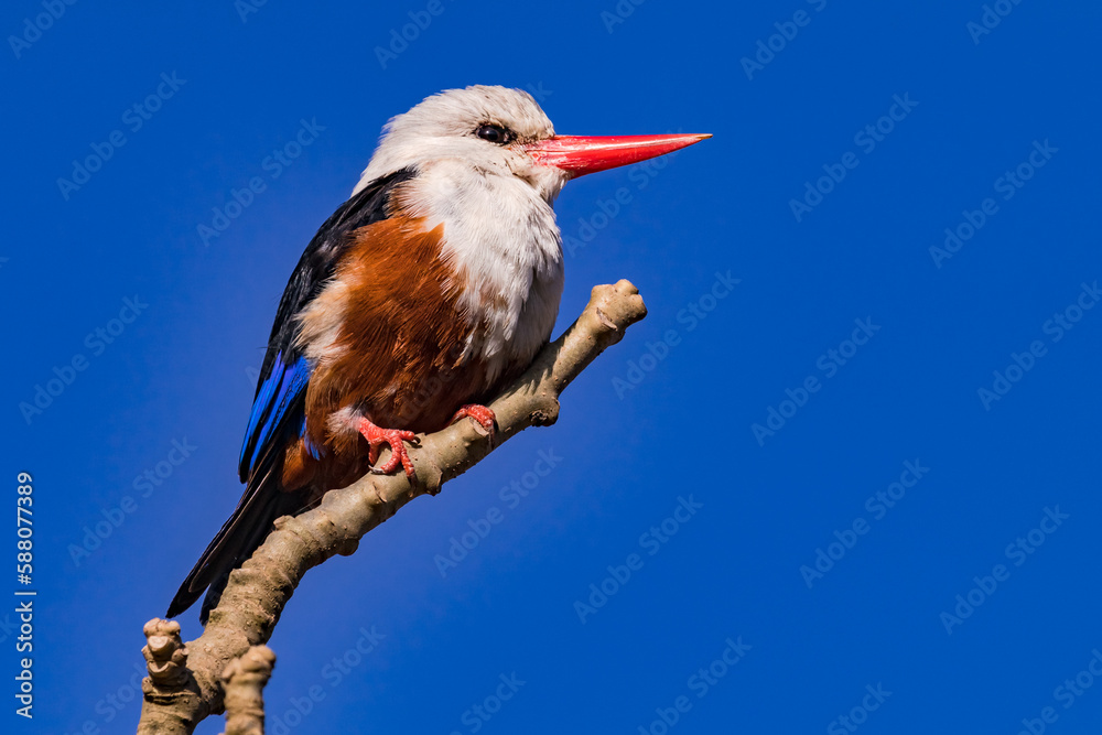 A striking kingfisher in the wild released on the African islands of Cape Verde