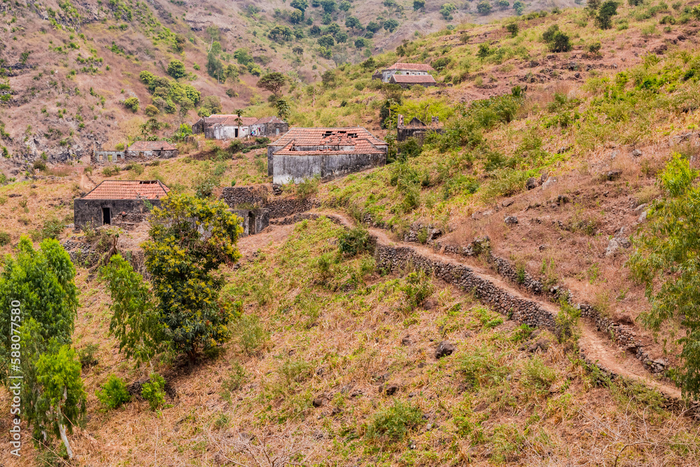 A lonely village in a valley in the mountains in the center of the island of Santiago, Cape Verde