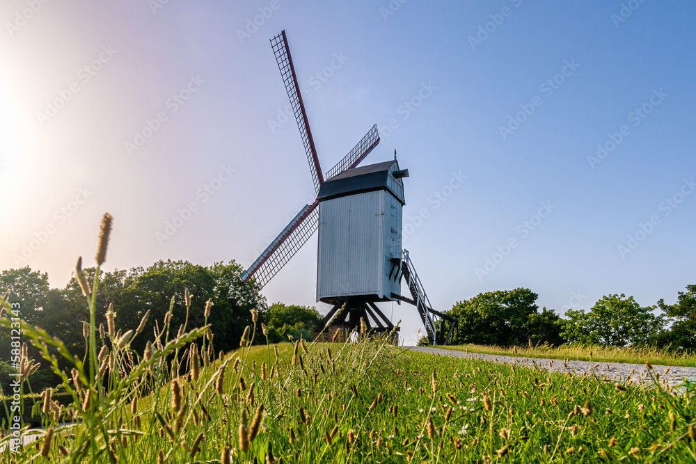 ein Sommertag in der Stadt Brügge in Belgien, mit den vielen Windmühlen, Kanälen und schönen flämischen Häusern