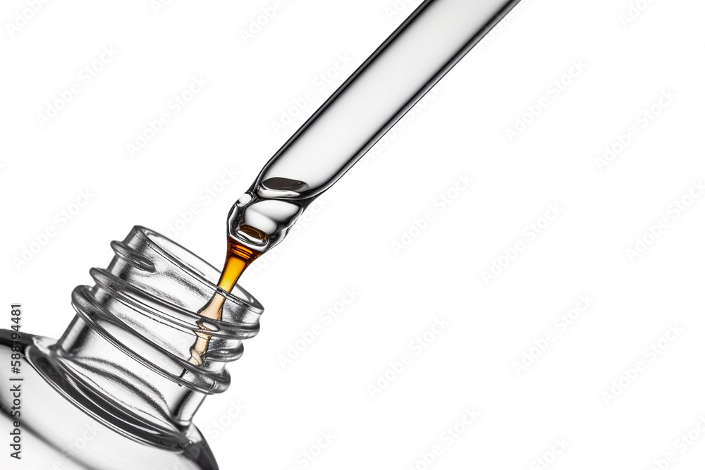 Pipette with essential liquid serum or oil. Isolated on a white background Closeup