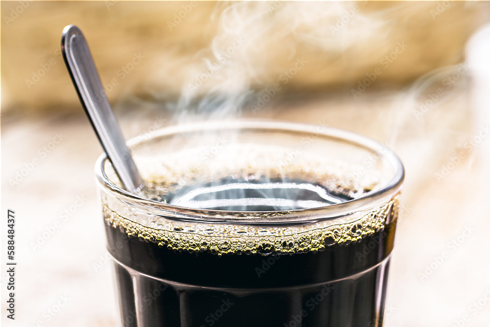 cup of hot black coffee, a typical hot drink from Brazil, served in bakeries and snack bars, macro photography