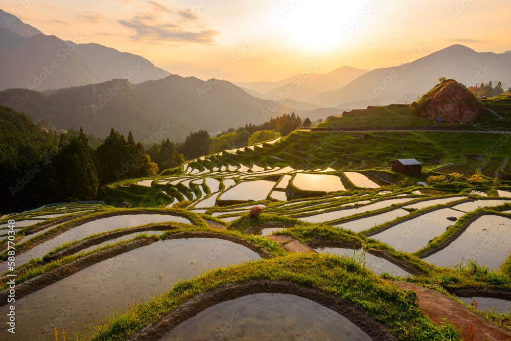 Japanese Rice Terraces in Kumano, Japan at Dusk