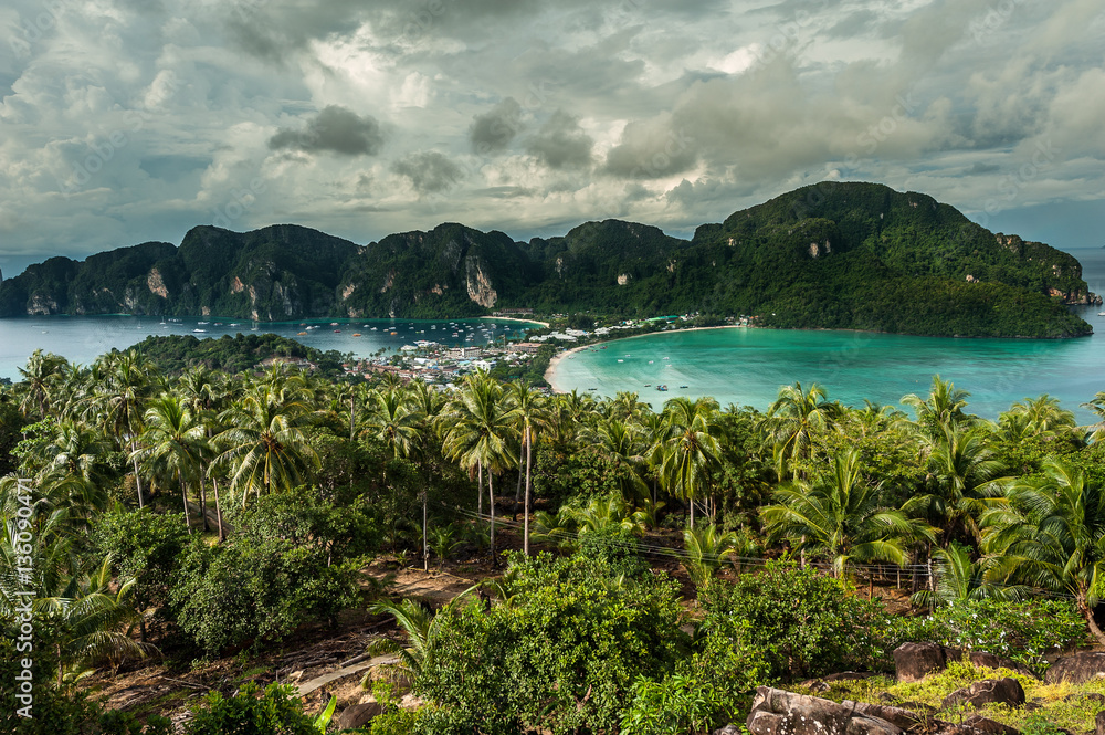 Portrait of crazy geek developer using computer coding searching web shopping sales isolated on shine color background