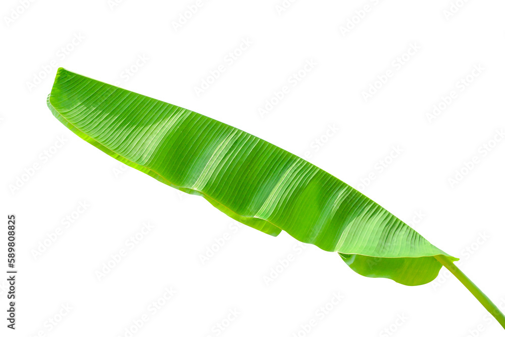 banana leaf isolated on transparent background. File contains a clipping path. Tropical plant foliage with visible texture. Pollution free symbol. Close up, copy space. png file.