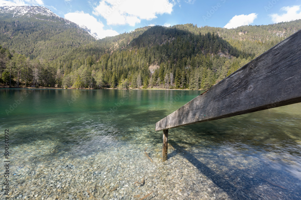 mountain lake forest wooden railing Fernsteinsee Tyrol