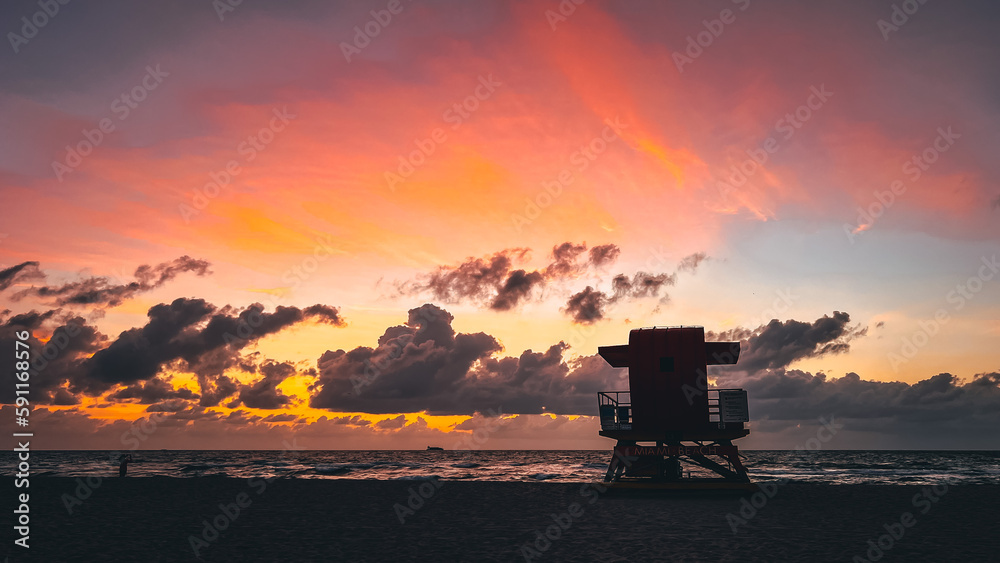 Miami Beach Sunrise on the beach with Lifeguard Tower