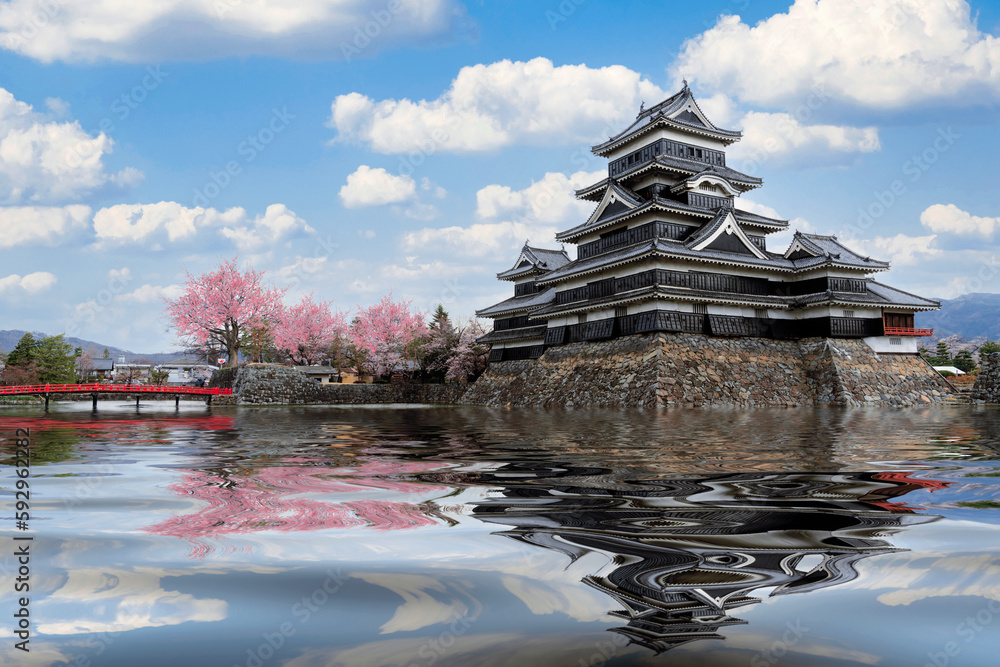 japanese castle in tokyo with cherry blossom