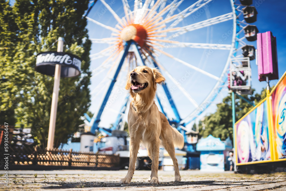 Golden Retriever vor Riesenrad