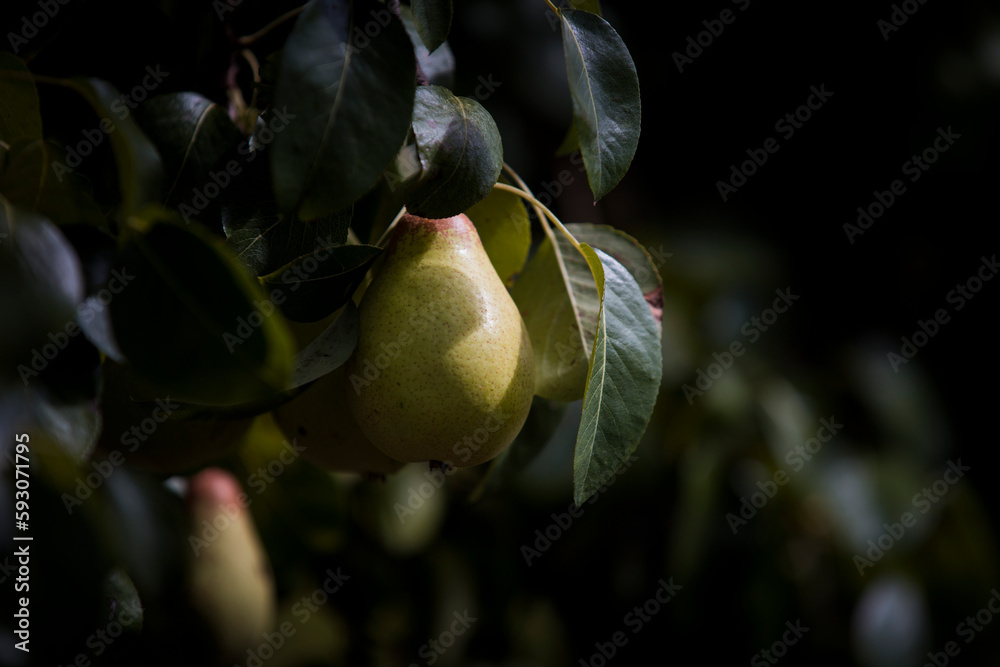 Detalhe de fruta neste caso uma pera na arvore em estado de maturação.