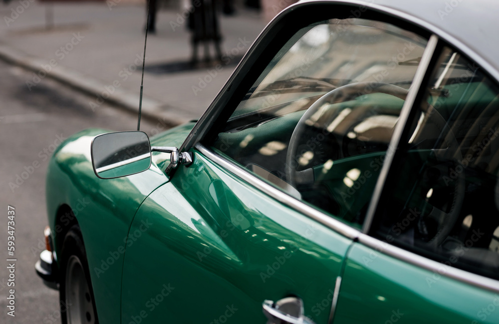 classic green car.
