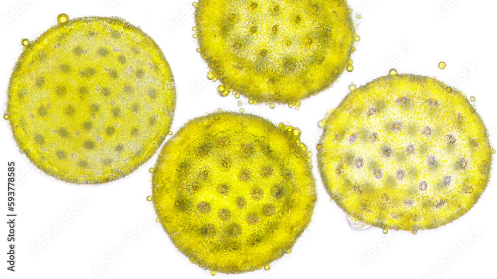 Marvel of Peru or four-o-clock (Mirabilis jalapa) pollen grains. Stacked photo.