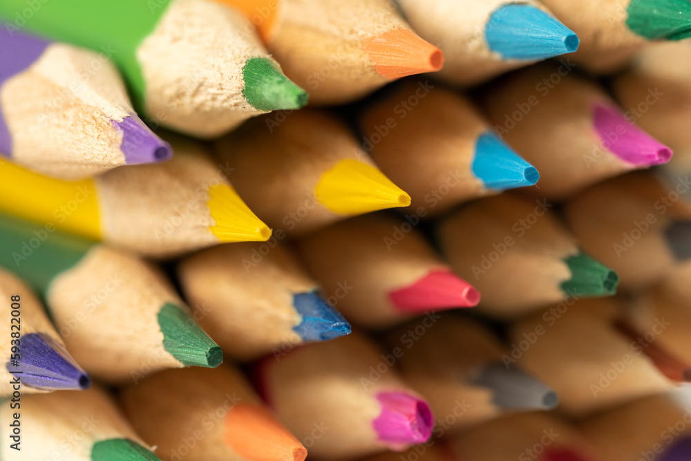 Colored pencils close-up macro shot. school education and drawing skills