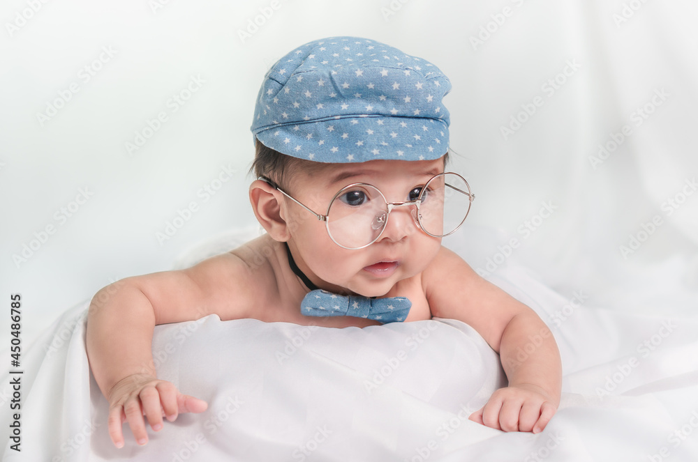Businessman hand in red suit pointing finger upwards isolated on white background progressive financial business concept