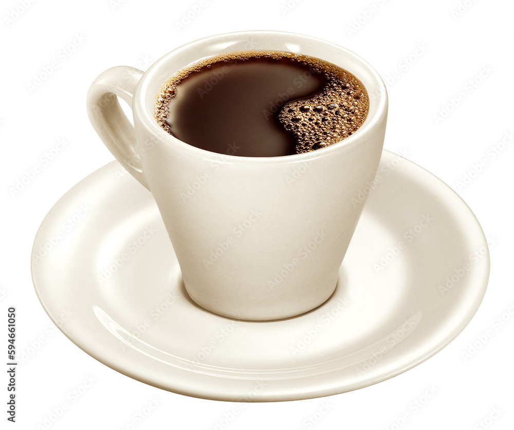 xícara de porcelana branco com café expresso fresco em fundo isolado transparente - xícara de café preto
