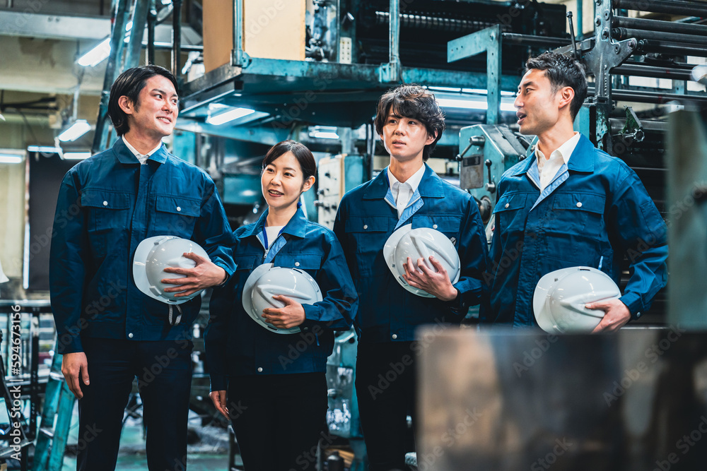 現場で情報共有をする労働者
