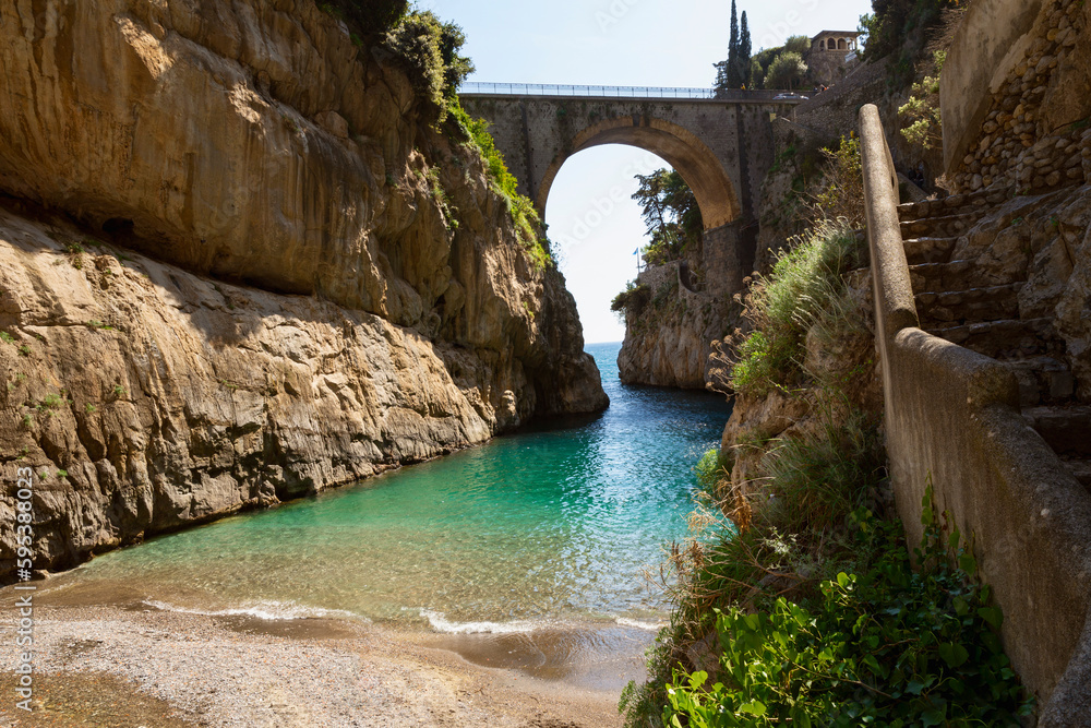 The fiord of Furore on Amalfi coast in Italy